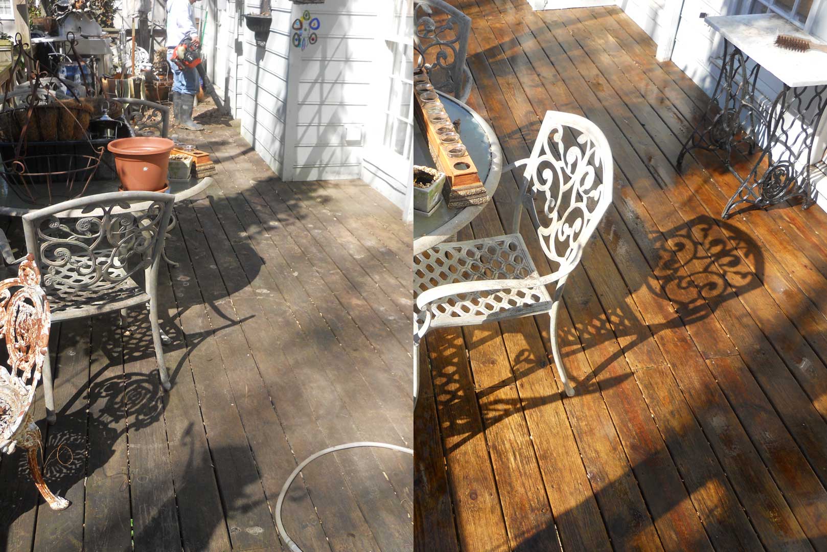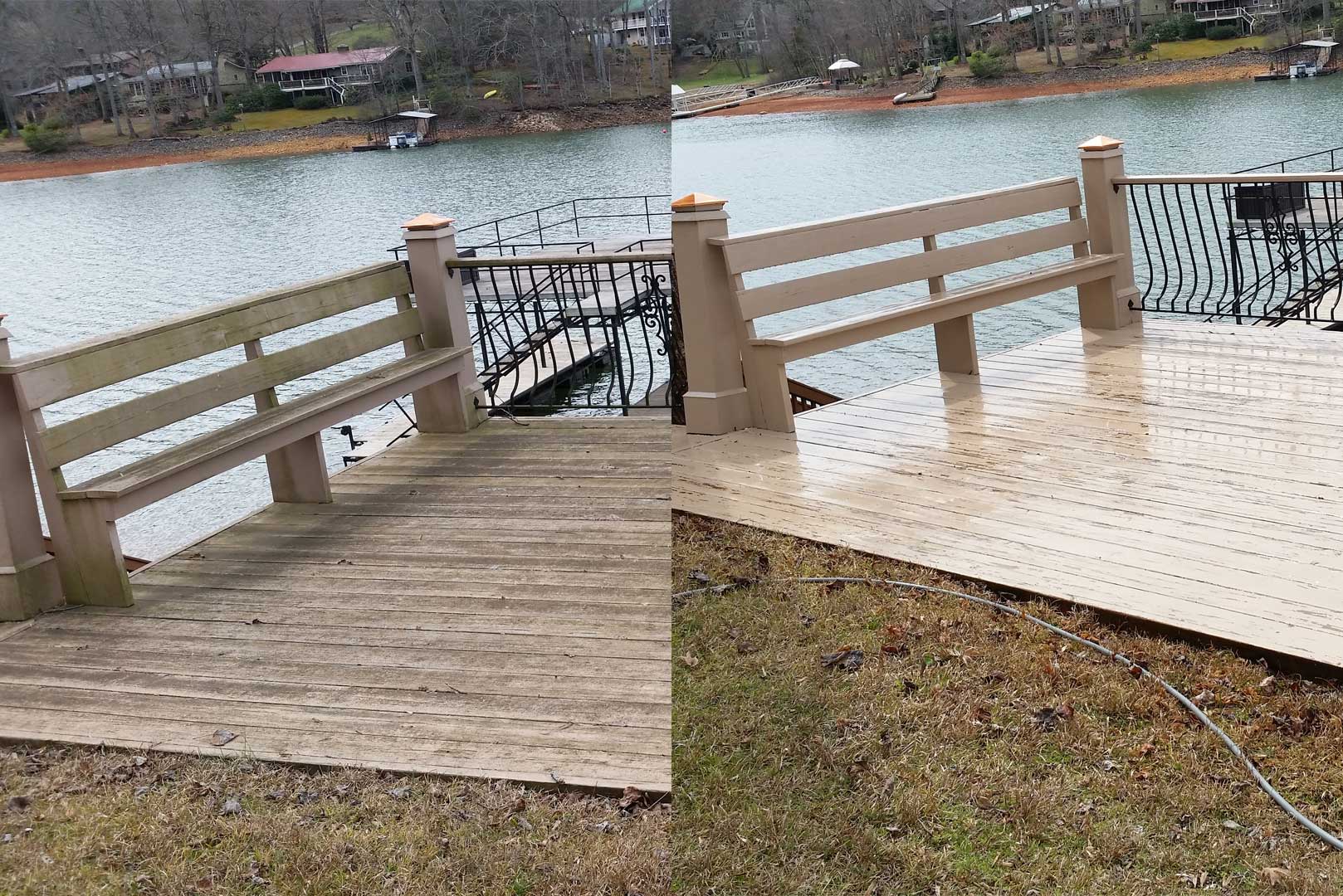 Whether your deck or fence has stain/paint on it or just pressure treated wood, we have the knowledge to clean it right the first time. Wood that has been stained or painted will be cleaned using a soft wash method that will not damage the wood or paint. The detergent and surfactants we use will do the cleaning not the water pressure. This method will also sanitize the surface. Wood that has not been stained or painted will have a grey dull look to them. We safely remove the grey with a medium psi and mild detergent to restore the wood to its original color. The cleaning of wood without stain or paint requires more time and labor but makes a the wood look new again.