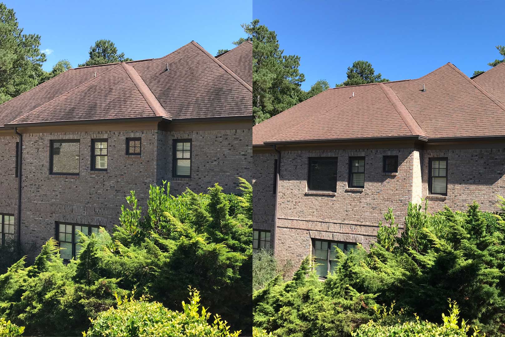 Don't replace your roof - renew your existing roof by having ClearView professionally clean it. Chances are your roof is in good condition and only needs a good cleaning. Roof cleaning is a crucial part of a proper home maintenance routine. Not only will the roof look brand new but you can relax in knowing your shingles will live out their full life. The black stains you see on your roof is a bacteria called Gloeocapsa magma. This type of bacteria feeds on the limestone filler in shingles. If left untreated it will drastically decrease the life of your roof. Our preferred soft wash method will safely remove all stains from your roof providing 100 percent results. Our non pressure roof cleaning methods are approved by American manufacturers association/tamko gaf and will not void your warranty or damage your shingles.